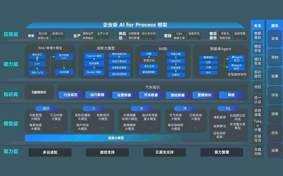 端到端的一站式AI工作空间深度融合了从企业战略规划到日常经营的全流程业务板块,,,定向解决车企内部领域多、、部门多、、、链条长、、、场景碎片化等难题,,,支持车企快速构建以AI为核心的生产力写作体系,,实现任务执行与AI能力的无缝集成与交互